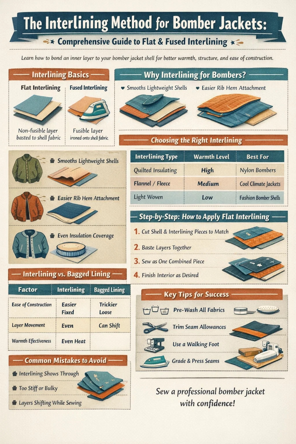 যখন লোকেরা একটি বোমার জ্যাকেট লাইন করার জন্য "ইন্টারলাইনিং পদ্ধতি ব্যবহার" সম্পর্কে জিজ্ঞাসা করে, তখন তারা প্রায়শই দুটি সম্পর্কিত কৌশলগুলির একটিকে বোঝায়: